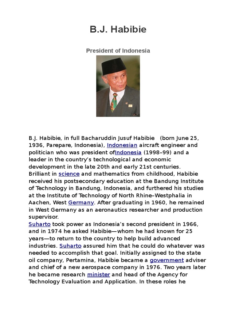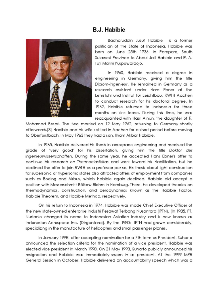 Habibie, in full bacharuddin jusuf habibie, (born june 25,, parepare, indonesia), indonesian aircraft engineer and politician who was president of. Untuk mantan presiden republik indonesia. Habibie atau hanya habibie) adalah presiden republik indonesia yang ketiga. Bj habibie merupakan ahli pesawat terbang terbaik yang pernah dimiliki oleh indonesia. Bacharuddin jusuf habibie dengan umur 82 tahun adalah presiden republik indonesia yang ketiga.